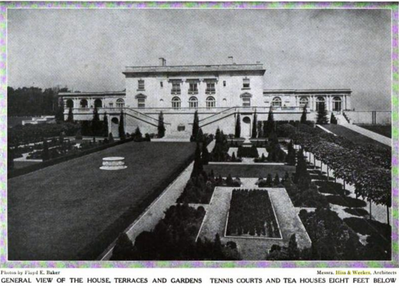 Hudson purchased about 260 acres of former farmland and hired the New York architectural firm of Hiss and Weekes to design a residence worthy of the Gold Coast’s emerging grandeur. The result was a palatial Italian Renaissance–style mansion of about sixty rooms, constructed of stone and set on a rise that overlooked formal gardens and wooded acreage. The architects’ plan balanced classical symmetry with the modern conveniences of the early twentieth century. The north façade was marked by a tall Ionic portico, while the south terrace opened toward the gardens in a sweeping double stairway. The house was surrounded by balustraded walks, pergolas, and terraces that descended to parterres and lawns designed by landscape architect Ferruccio Vitale, whose work at Knollwood ranked among the most refined examples of the American Country Place Era.
