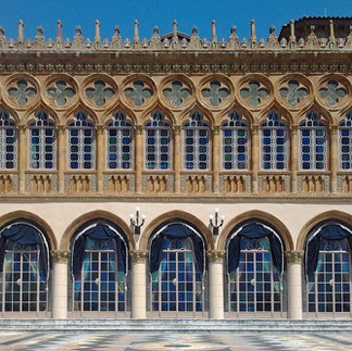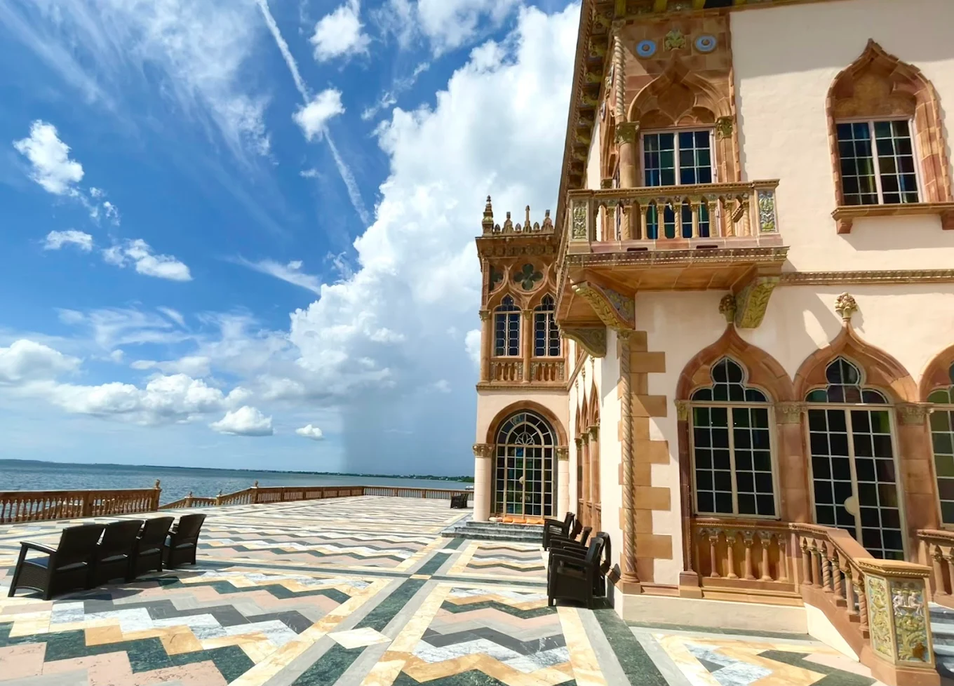 Construction of Ca’ d’Zan began in 1924. Over the next two years, the structure rose along Sarasota Bay. The design drew from multiple European influences, including Venetian Gothic, Italian Renaissance, Moorish, and Spanish forms, unified within a Mediterranean Revival framework. The house was named Ca’ d’Zan, meaning “House of John” in Venetian dialect, though its design and execution reflected Mable’s direction.
